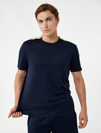 Rahat Kesim Renk Kontrastlı Kısa Kollu Bisiklet Yaka Spor Tişört