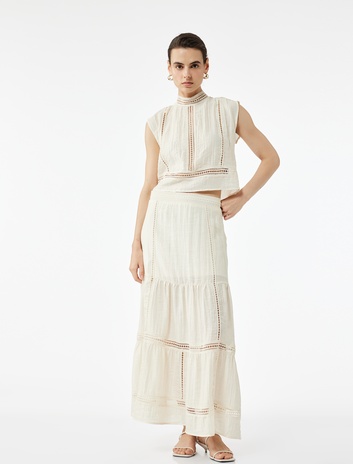 Koton X Melis Ağazat - Brodeli Fistolu Arkası Düğmeli Dik Yaka Kolsuz Bluz