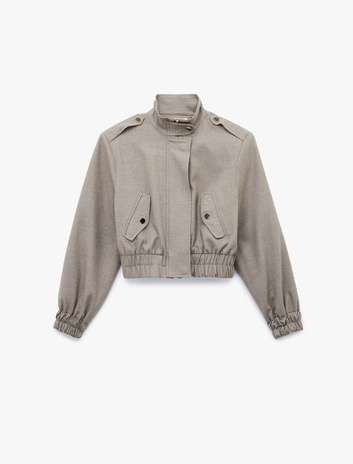 Dik Yaka Uzun Kollu Çıtçıt Düğme Detaylı Fermuarlı Bomber Ceket Sepete Ekle