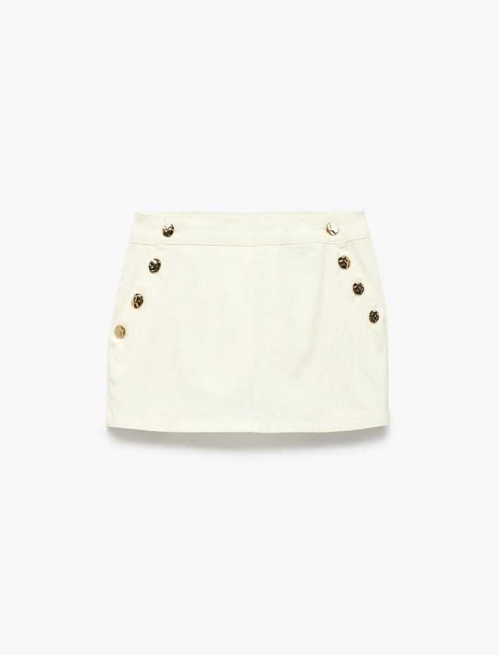 Düğme Detaylı Rahat Kalıp Pamuklu Mini Şort Etek