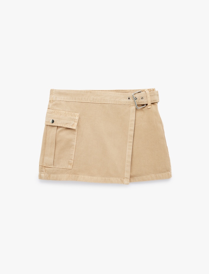Kemer Detaylı Rahat Kalıp Pamuklu Kargo Cepli Mini Şort Etek
