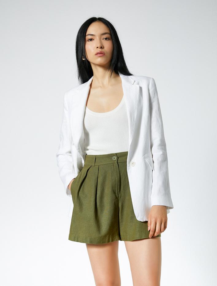 Keten Karışımlı Şort Bol Kesim Pileli