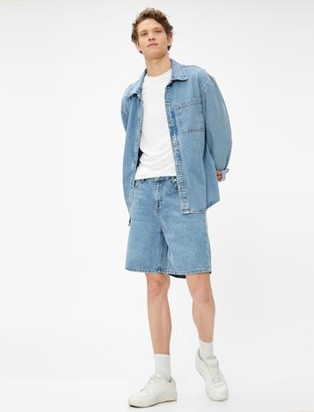 Oversize Kot Şort Düğmeli 5 Cepli Pamuklu Sepete Ekle