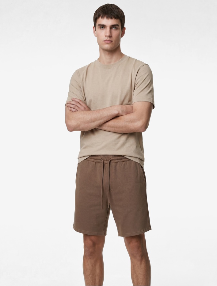 Pamuklu Rahat Kalıp Cepli Beli Lastikli Spor Şort Sepete Ekle