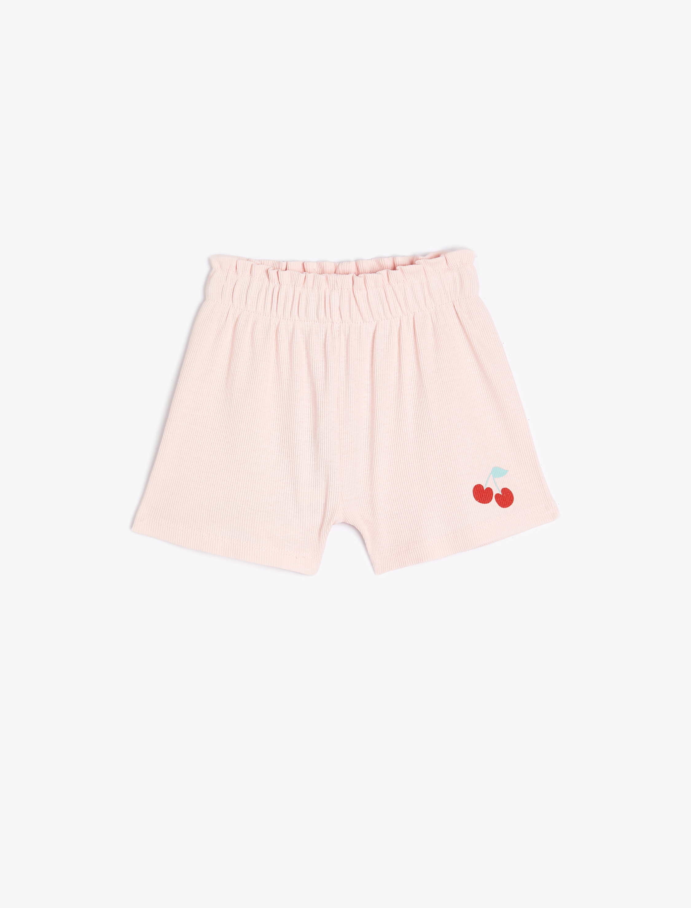 Kız Bebek Şort Pamuklu Dokulu Beli Lastikli Kiraz Baskılı