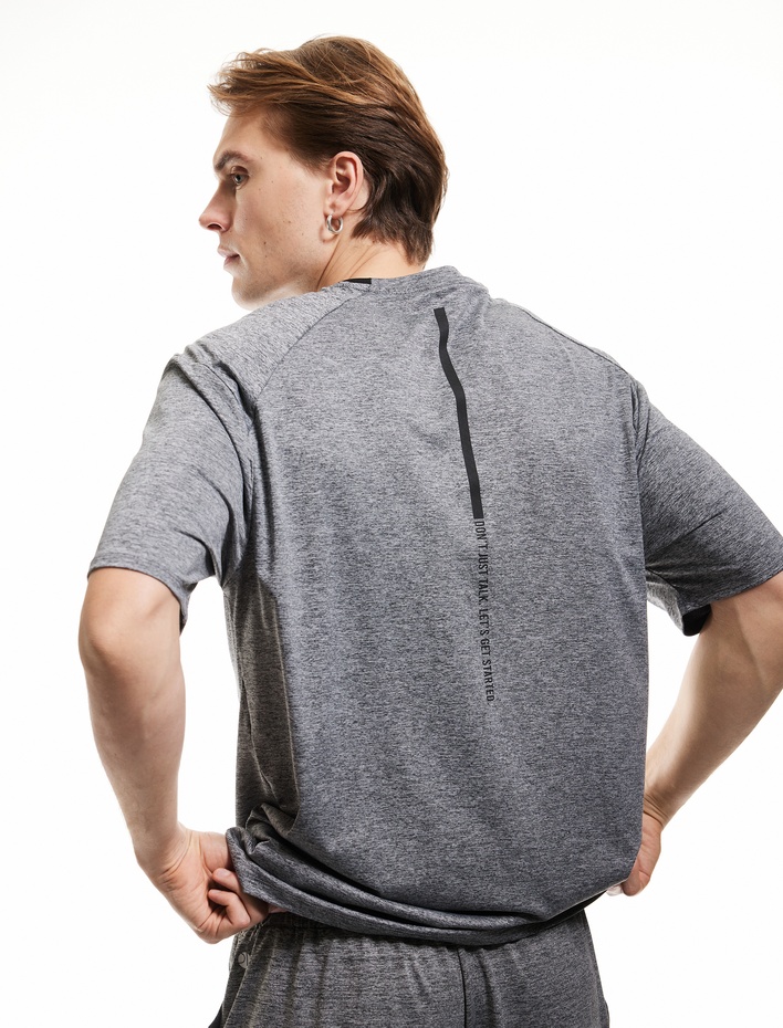 Kısa Kollu Bisiklet Yaka Reglan Kol Arkası Baskılı Slim Fit Spor Tişört