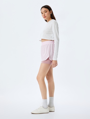 Yüksek Bel Taytlı Renk Bloklu Beli Lastikli Spor Şort Sepete Ekle