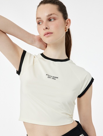 Kolsuz Bisiklet Yaka Rahat Kalıp Crop Sporcu Atleti