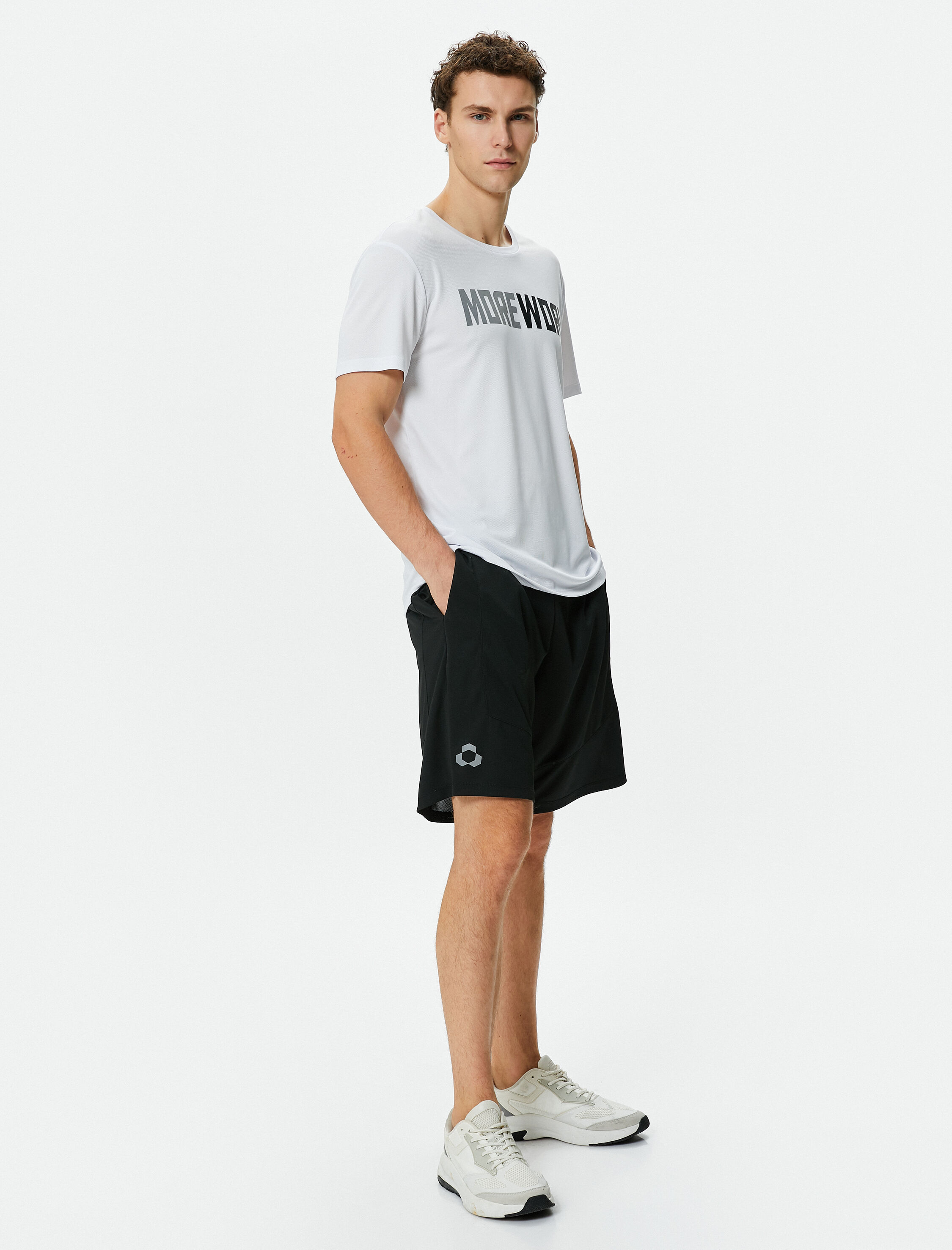 Spor Şort Beli Lastikli Slogan Baskılı Cepli
