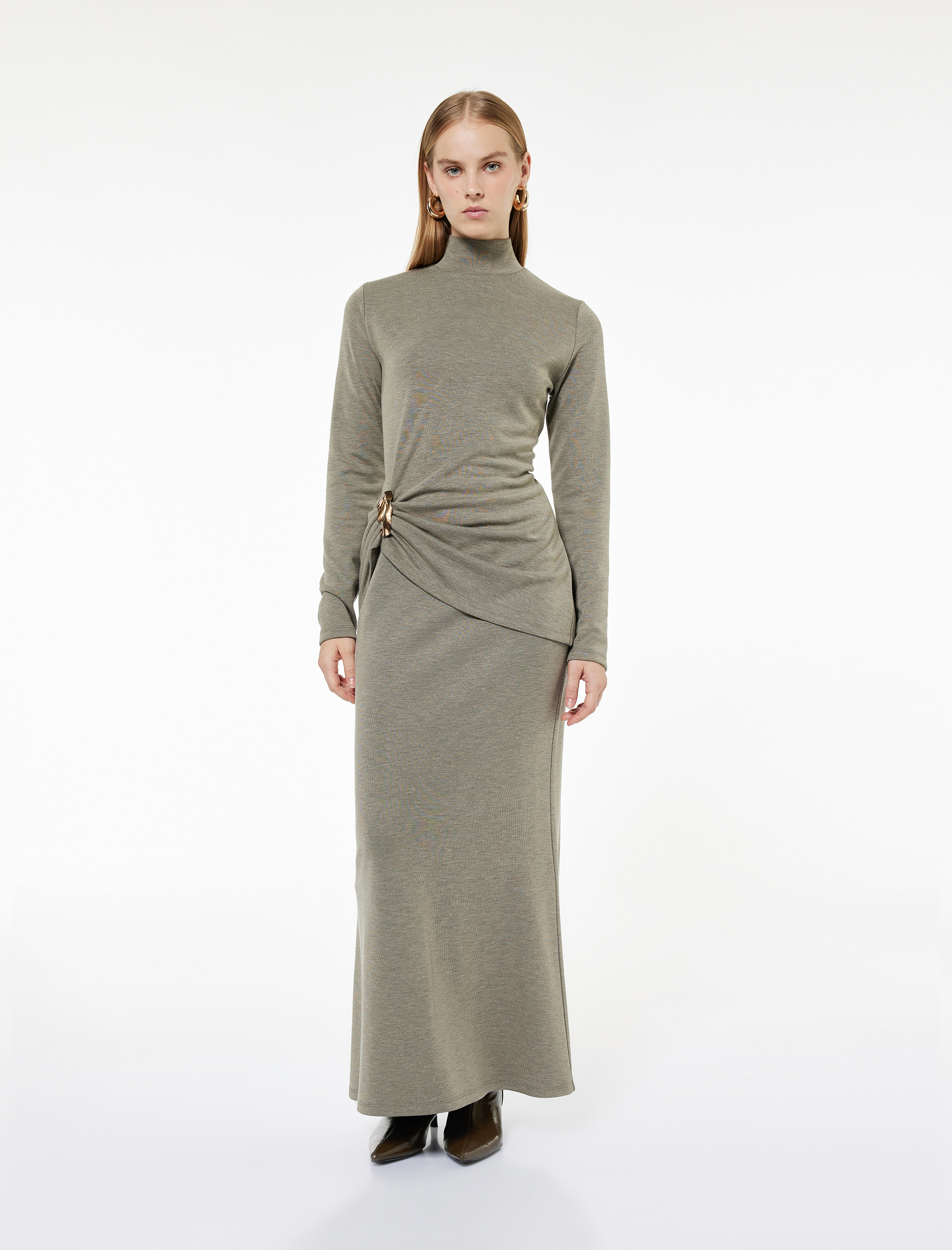 <p><p>Uzun etek, zarif ve modern tasarımıyla dikkat çekiyor. Soğuk günlerde sıcaklık sağlarken, stil sahibi bir görünüm sunuyor. Normal bel tasarımı ve rahat kalıbı sayesinde, hem günlük kombinlerde hem de özel günlerde konforlu bir şekilde tercih ediliyor. Yumuşak bir doku sunan etek, zarif tasarımıyla dolabınızda yer alması gereken parçalardan biri oluyor. Ofis şıklığı için gömleklerle kombinlenebileceği gibi, basic üstlerle de kolaylıkla kullanılabilir.</p></p><strong>Stil Önerisi</strong><p><p>Uzun etek, şık bir kazak ve topuklu ayakkabılarla kombinlenerek ofis şıklığı yaratıyor. İnce bir kemer ile belinizi vurgulayabilir, klasik bir blazer ceket ile zarif bir görünüm elde edebilirsiniz. Günlük stil için ise basic bir tişört ve sneakerlarla rahat bir kombin yaratabilirsiniz. Minimal takılar ve şık bir çanta ekleyerek stilinizi tamamlayabilirsiniz.</p></p><strong>Ürün Özellikleri</strong><p><p><br>Fit: Regular<br>Bel Tipi: Normal Bel<br>Boy: Uzun<br>Kullanım Alanı: Günlük Giyim, Ofis Giyim</p></p><p><p>Koton etek koleksiyonu ile stilinizi yeni bir seviyeye taşıyın. Şıklığı ve konforu bir arada sunan tasarımlarla fark yaratın!</p></p><p></p><p>