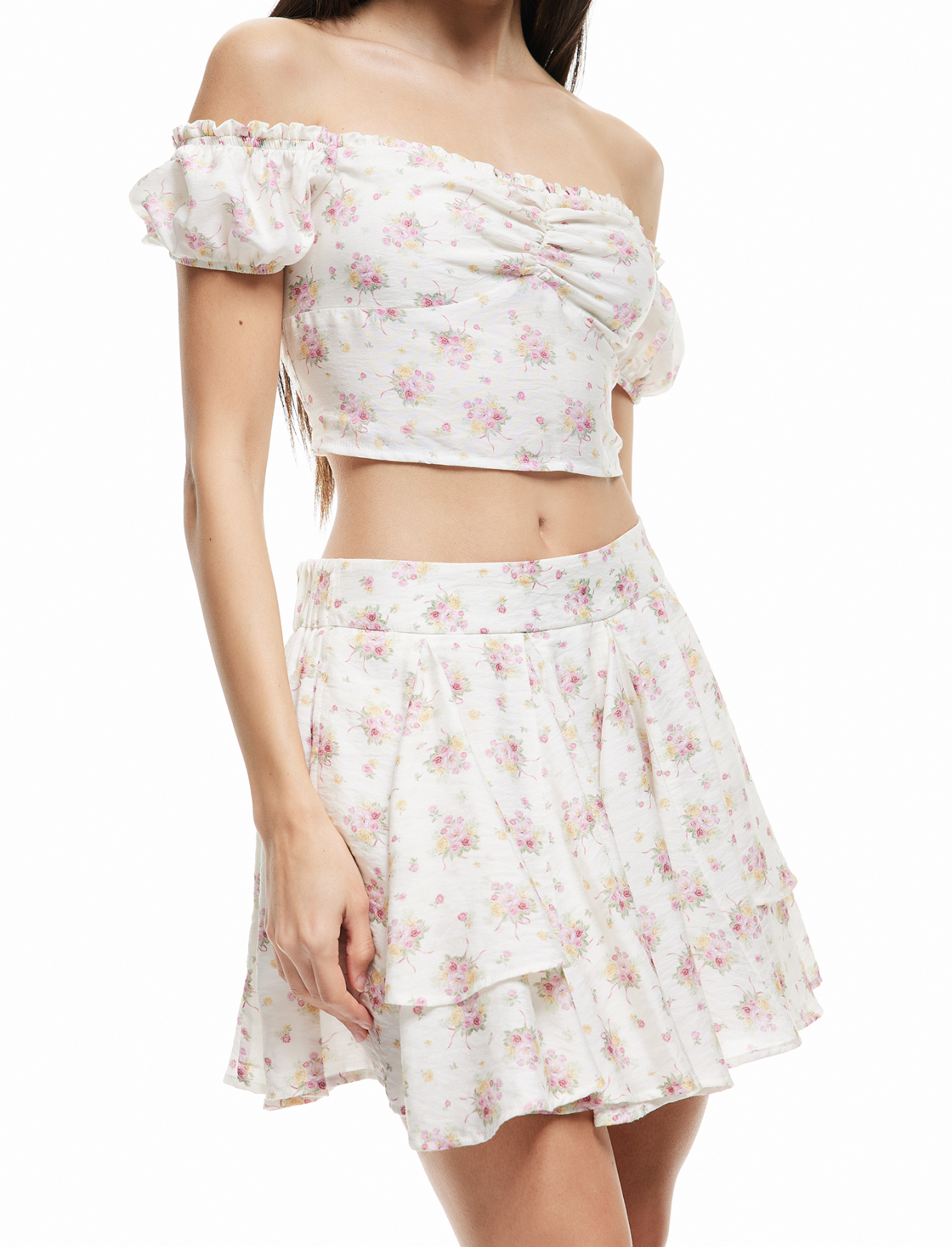 Astarlı Aerobin Kumaş Fırfırlı Mini Çiçekli Etek