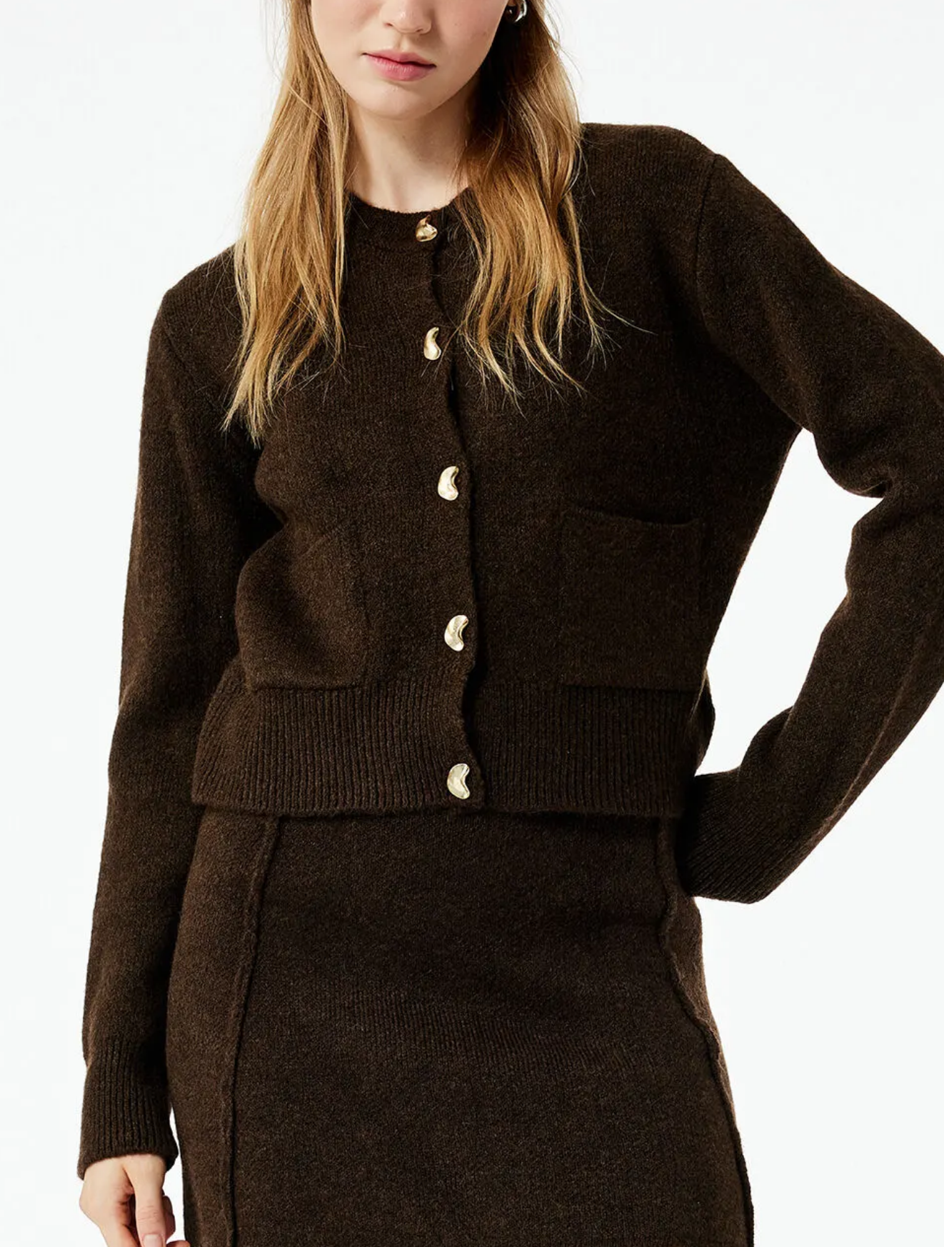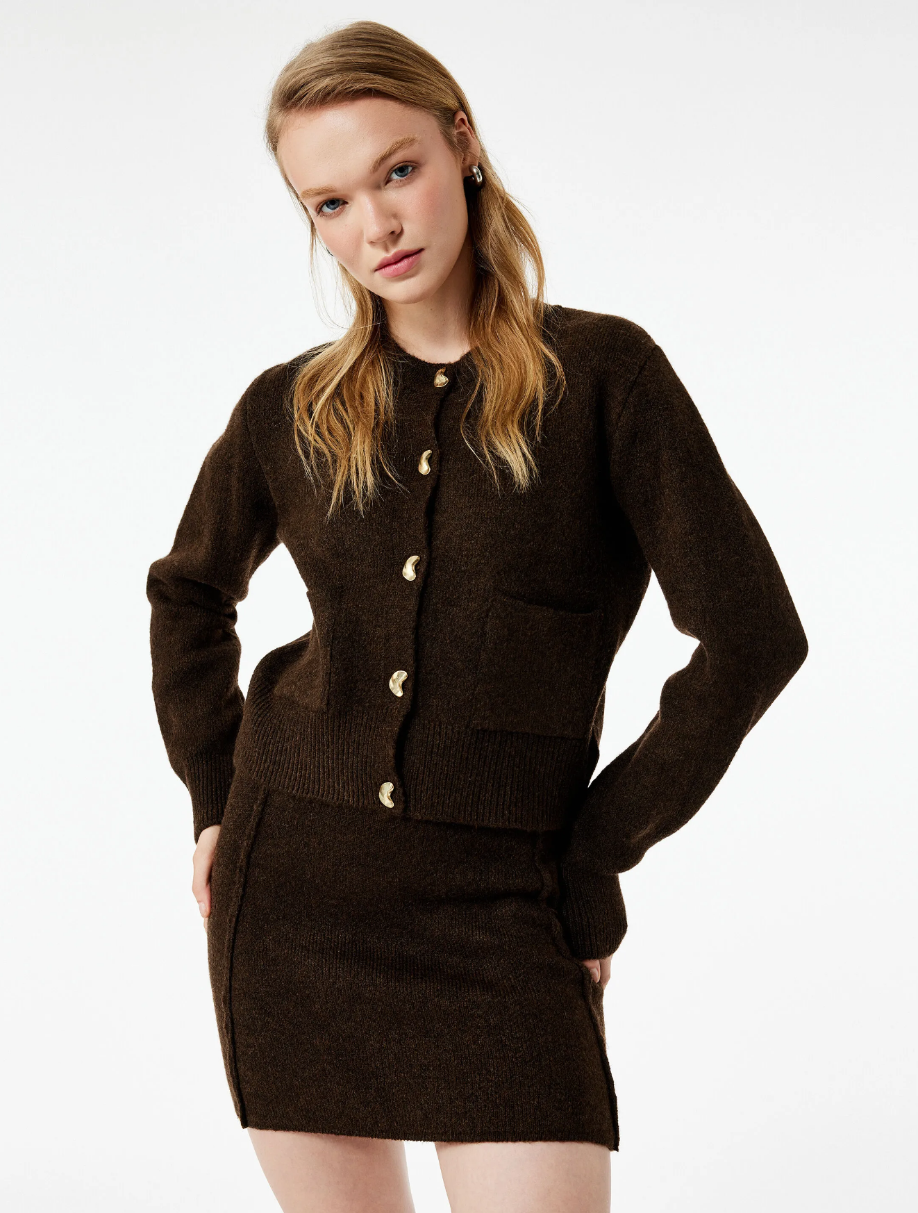 Uzun Kollu Bisiklet Yaka Cep Detaylı Düğmeli Hırka