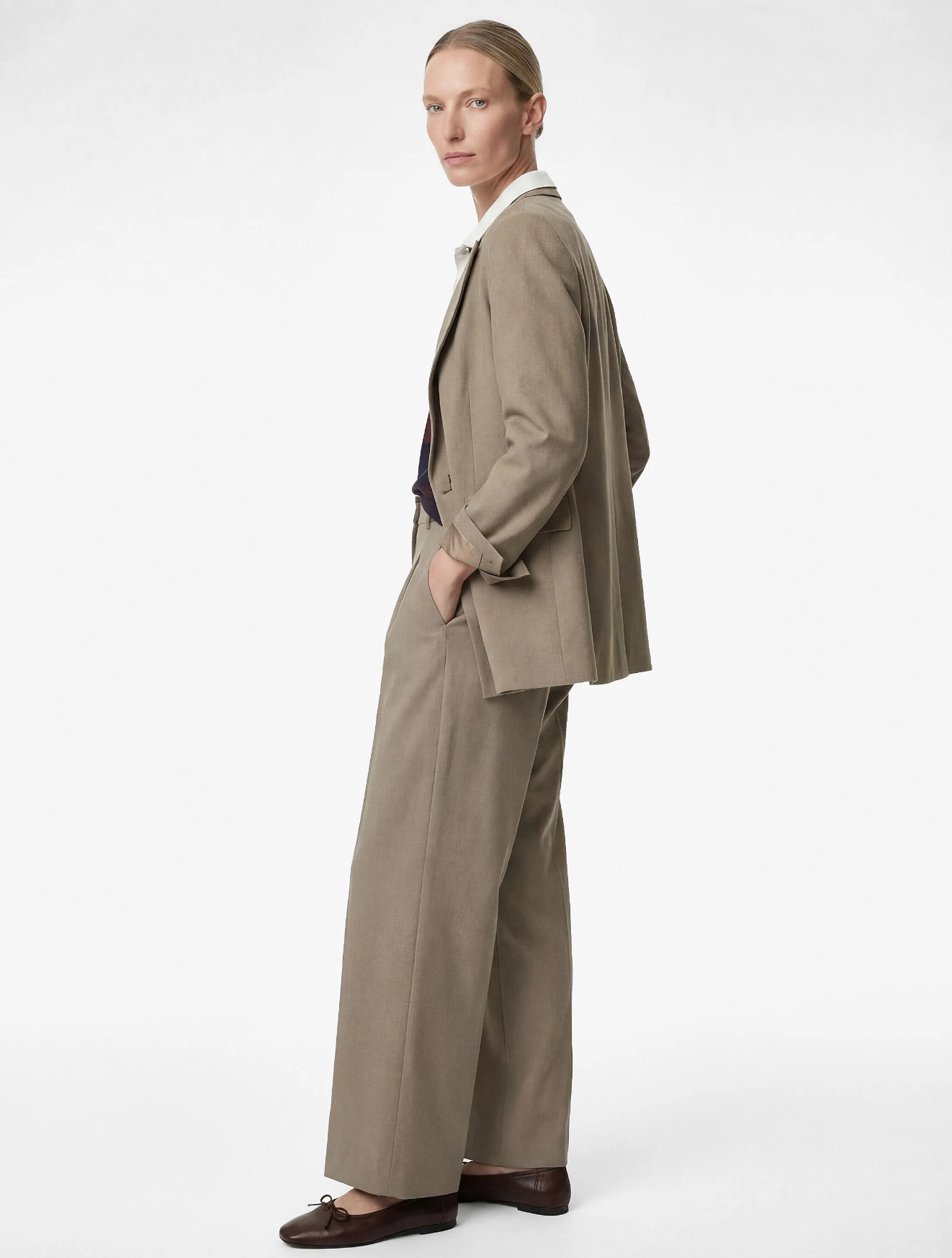 Viskon Karışımlı Cepli Yüksek Bel Düğme Detaylı Palazzo Pantolon