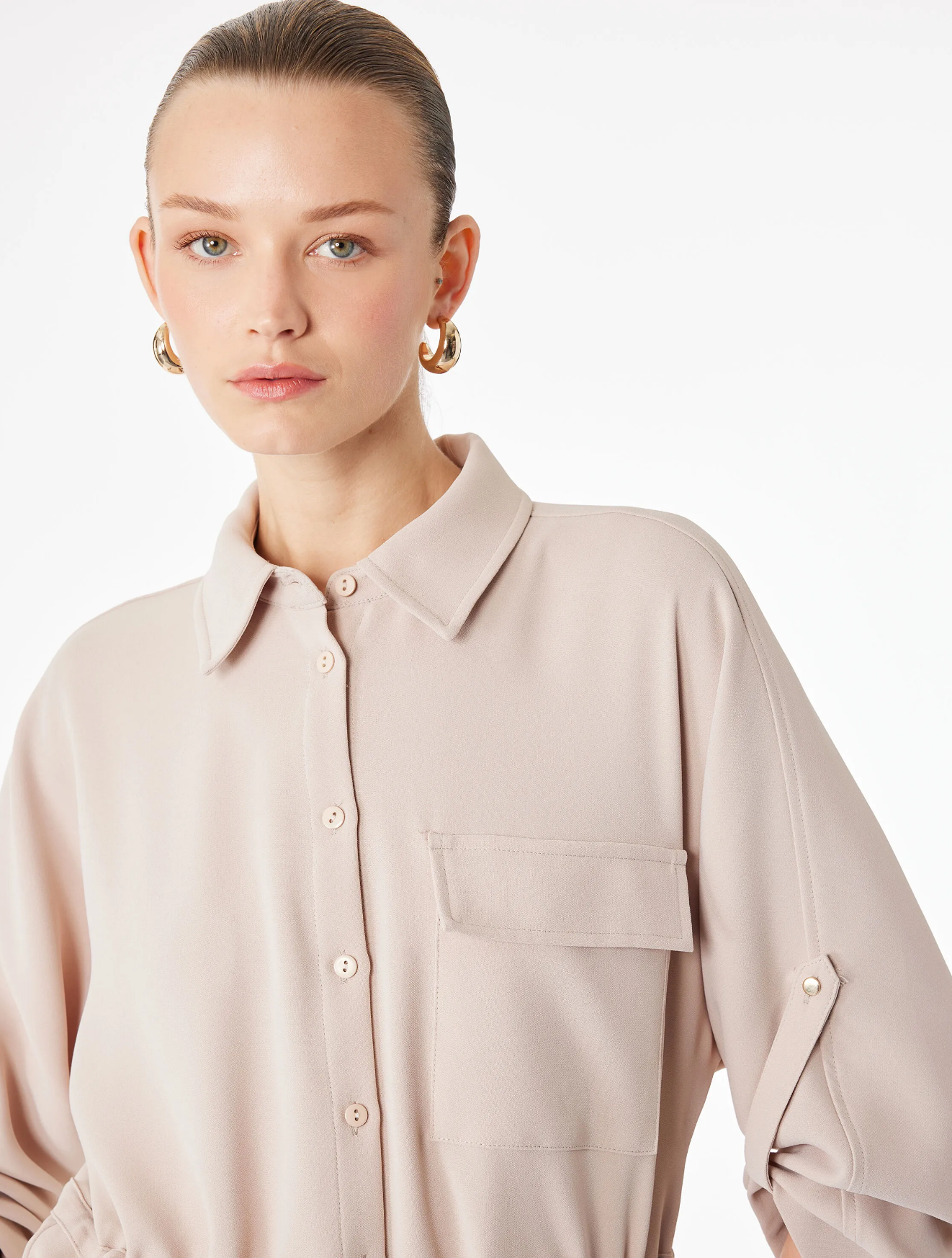 Uzun Kollu Klasik Yaka Beli Bağcıklı Cepli Gömlek