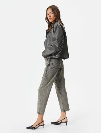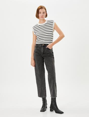 Straight Jean Kot Pantolon Düz Paça Yüksek Bel Pamuklu Cepli  - Eve Jean Sepete Ekle