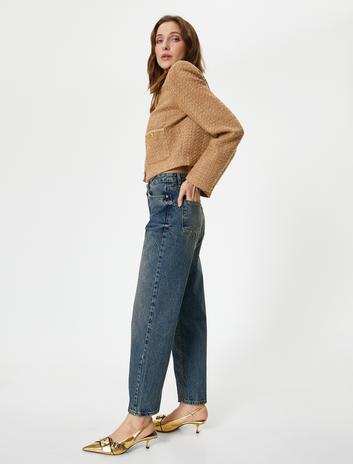 Düz Paça Kot Pantolon Düğmeli - Straight Jeans