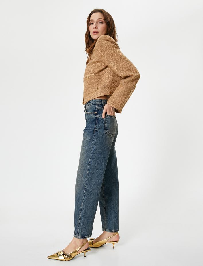 Taşlı Straight Fit Normal Bel Crop Düğmeli Kot Pantolon -  Straight Fit Jean Sepete Ekle
