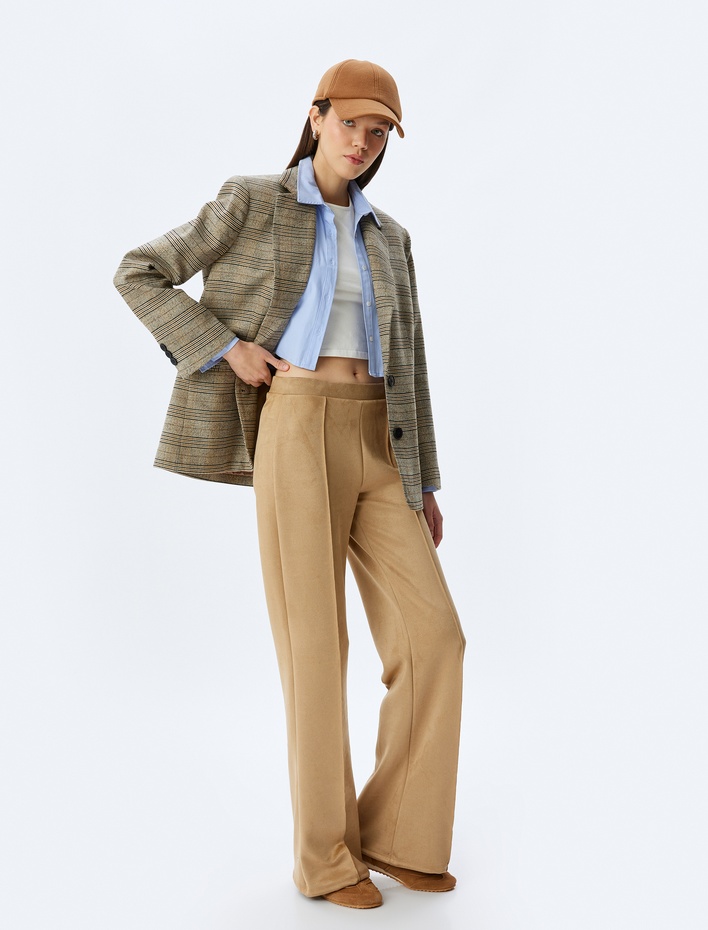 Koton X Zeynep Bastık - Süet İspanyol Paça Pantolon Cepli Standart Bel