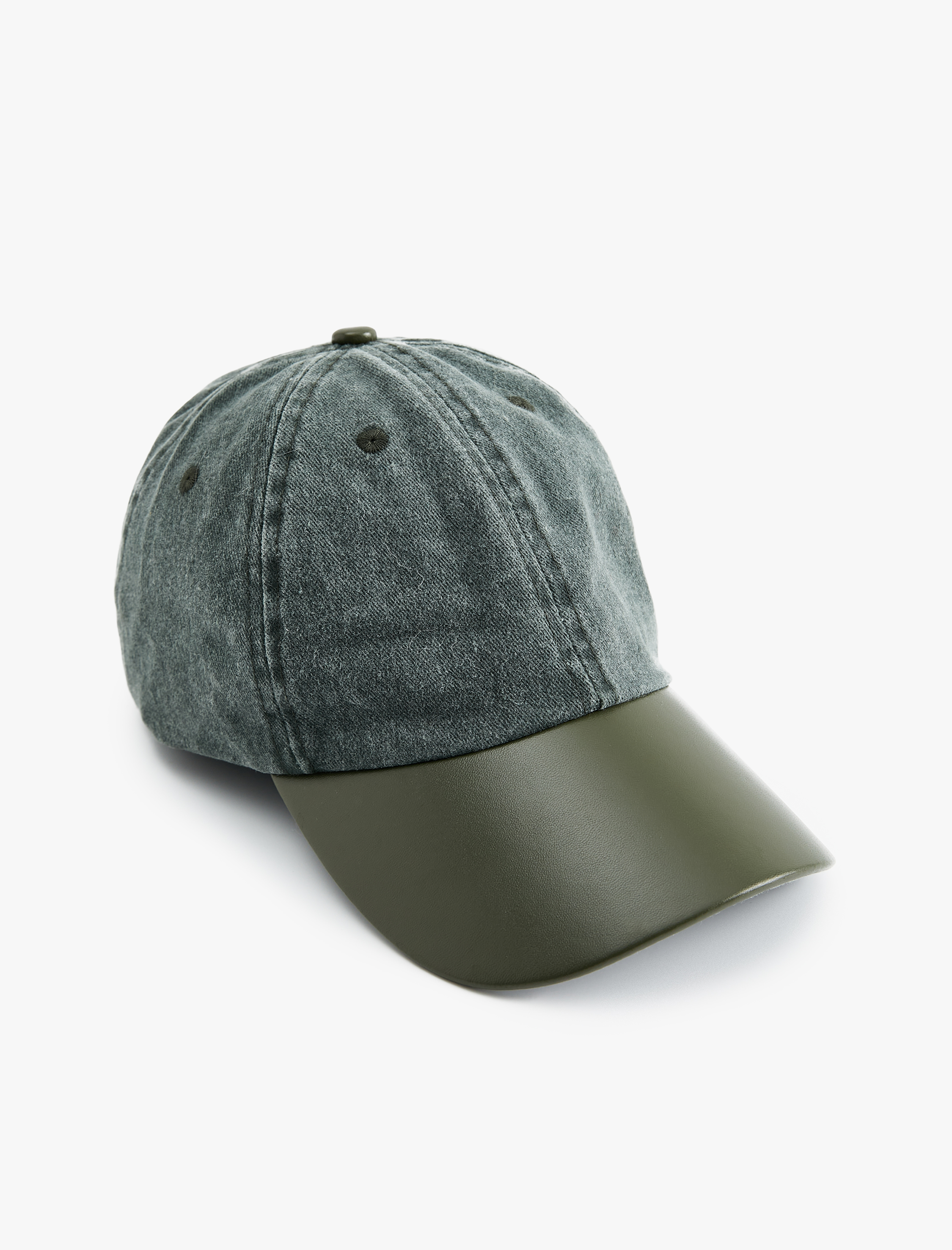 Suni deri detaylı, kep şapka.