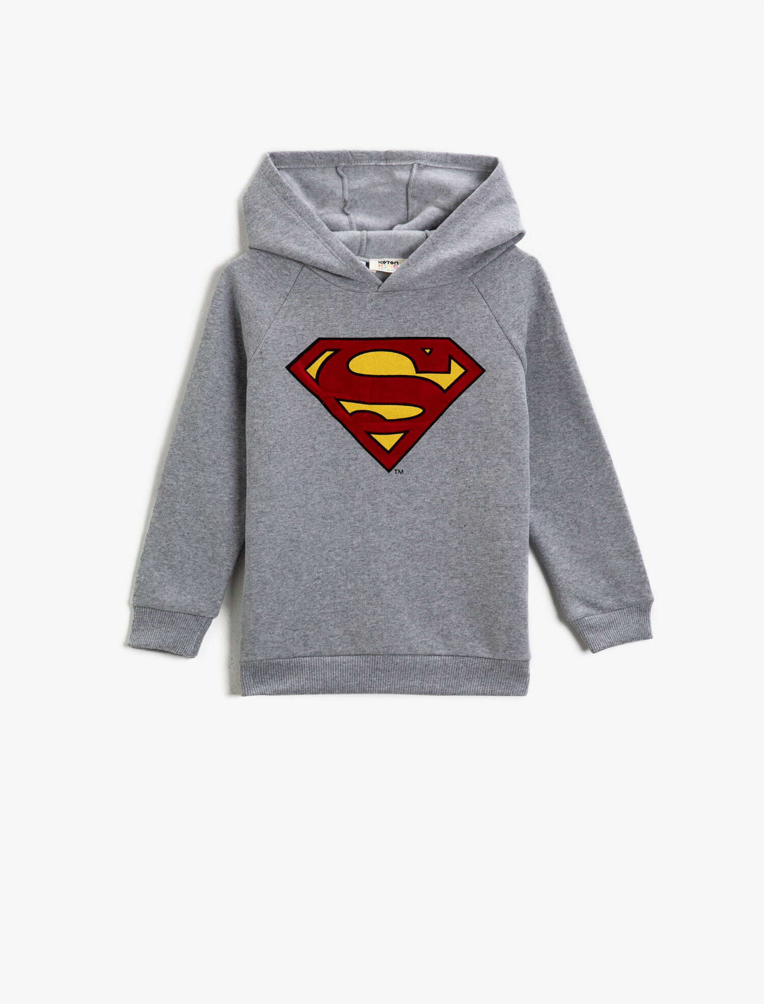 Kalın, Şardonlu, Superman Baskılı , Kapüşonlu Sweatshirt , Uzun Kollu