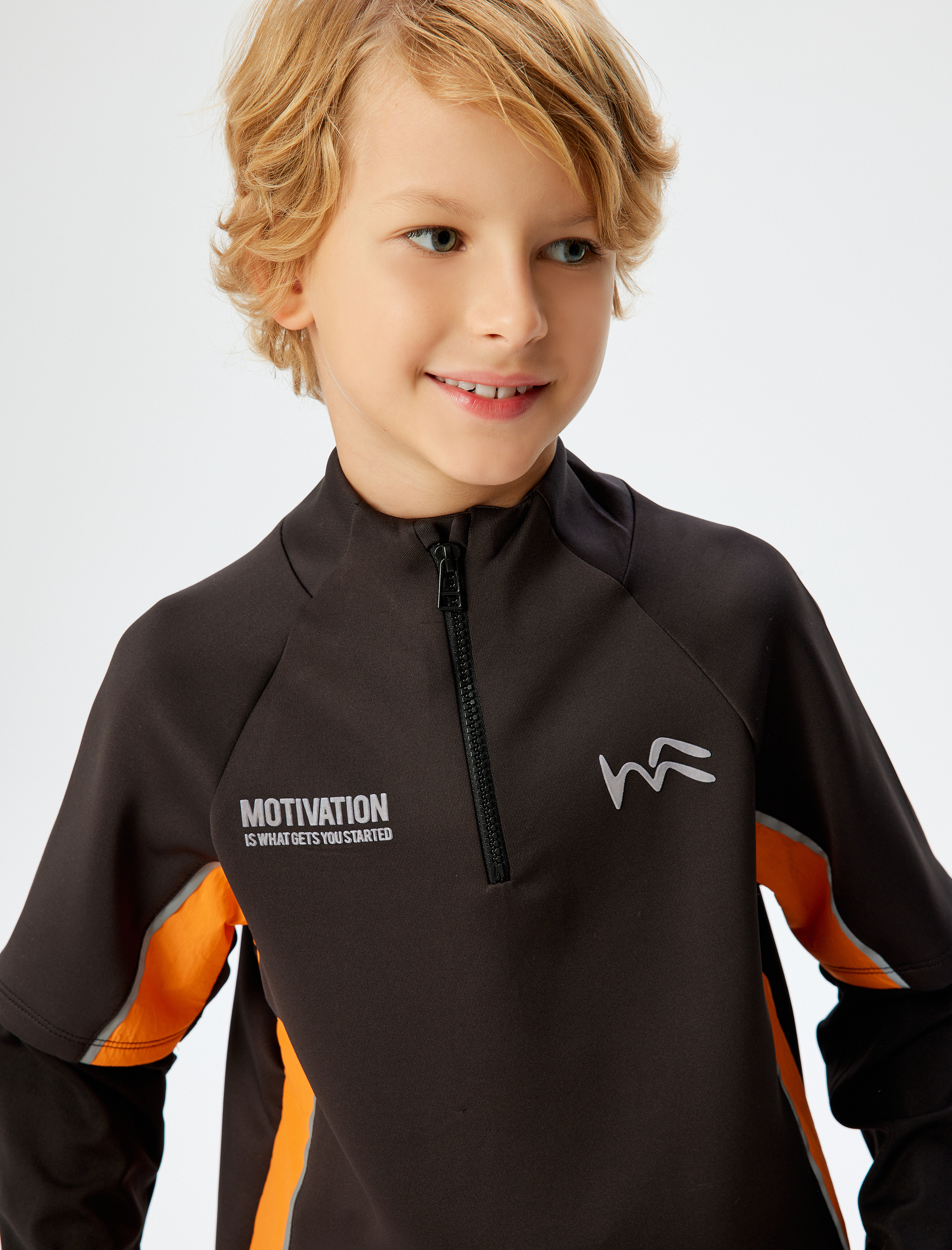 Erkek Çocuk Sweatshirt Dik Yaka Yarım Fermuarlı Uzun Kollu İşleme Detaylı