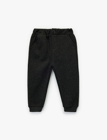 Erkek Bebek Düğme Detaylı Cepli Beli Lastikli Basic Pantolon Görünümlü Eşofman Altı