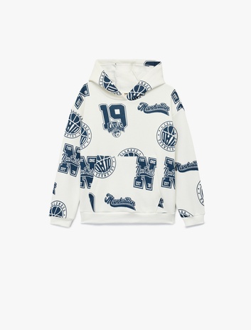 Erkek Çocuk Basketbol Baskılı Şardonlu Uzun Kollu Kapşonlu Sweatshirt