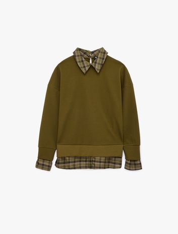 İki Farklı Kumaş Kullanımlı Kombine Uzun Kollu Ekose Gömlek Yaka Sweatshirt Sepete Ekle