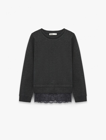 Uzun Kollu Bisiklet Yaka Dantel Detaylı Pamuklu Sweatshirt Sepete Ekle
