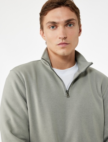 Uzun Kollu Şardonlu Basic Yarım Fermuarlı Sweatshirt Sepete Ekle