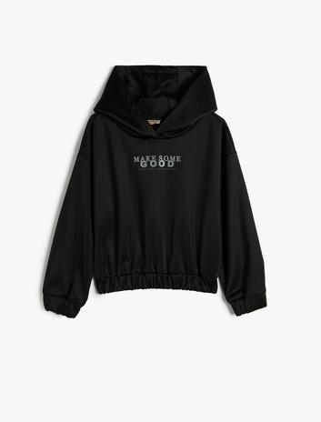 Kapşonlu Sweatshirt Slogan Baskılı Uzun Kollu Ribanalı Şardonlu Sepete Ekle