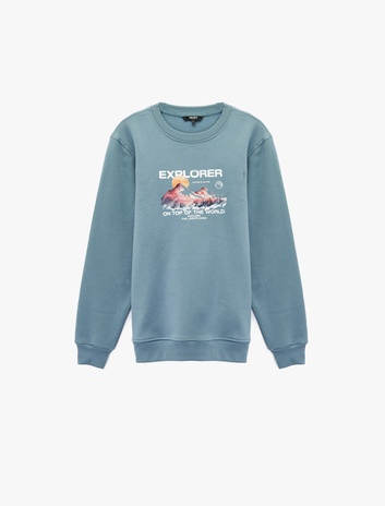 Uzun Kollu Bisiklet Yaka Şardonlu Baskılı Sweatshirt