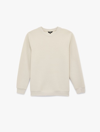 Regular Fit Uzun Kollu Dokulu Bisiklet Yaka Sweatshirt