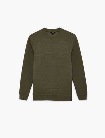 Uzun Kollu Regular Fit Waffle Dokulu Bisiklet Yaka Sweatshirt