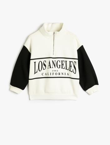 Erkek Çocuk Sweatshirt Dik Yaka Yarım Fermuarlı Kolej İşlemeli Şardonlu