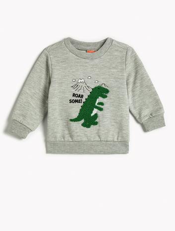 Erkek Bebek Sweatshirt Dinozor Peluş Aplike Detaylı Şardonlu Bisiklet Yaka