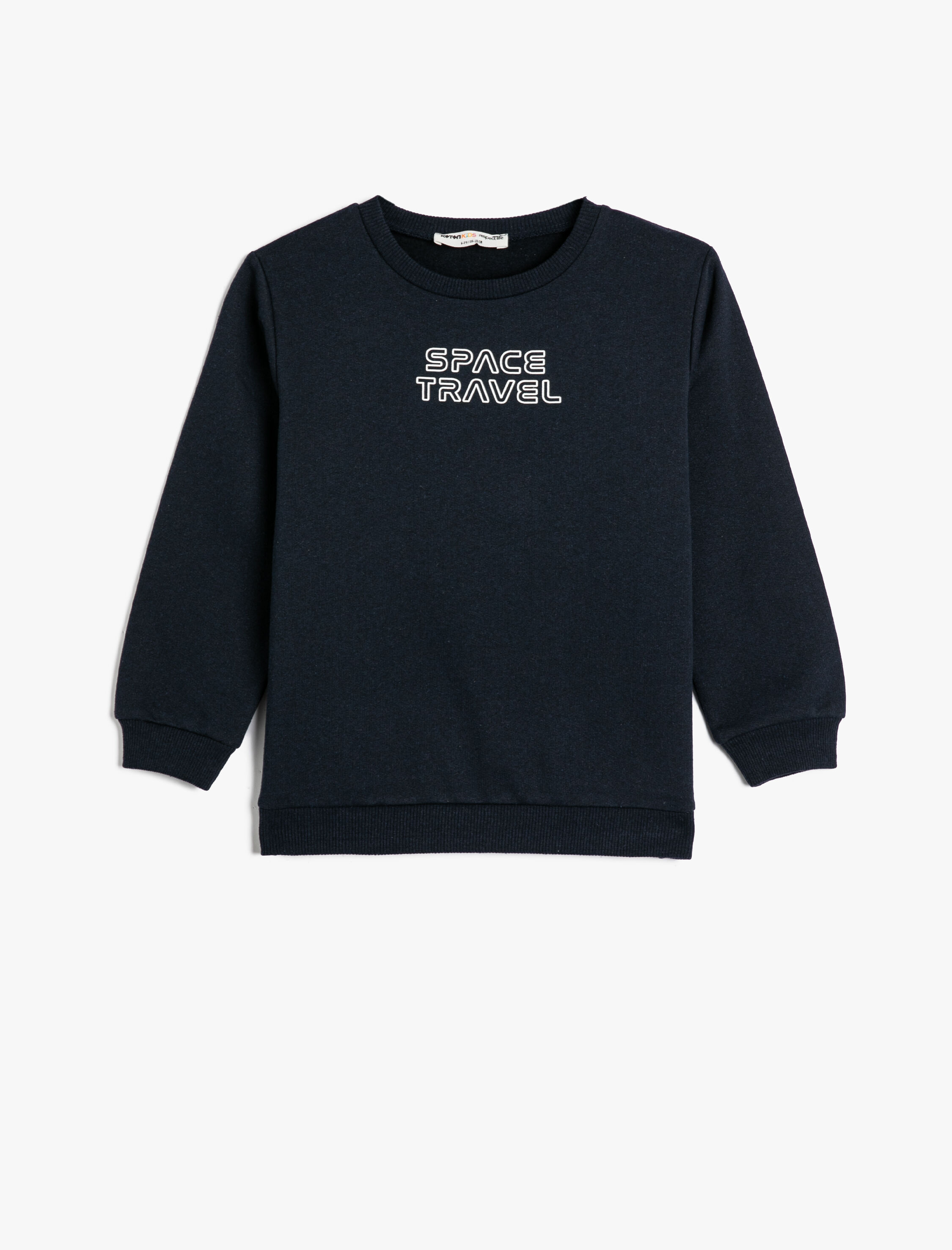 Erkek Çocuk Sweatshirt Uzun Kollu Bisiklet Yaka Slogan Baskılı Şardonlu