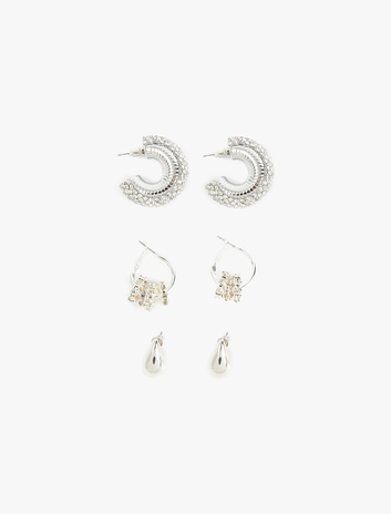 { "id": "8684756815228", "name": "3'lü Çelik Halka Küpe Seti", "taxonomy":["ACCESSORIES","ACCESSORIES","WOMEN","JEWELLERY","EARRINGS"], "currency": "TRY", "unit_price": 299.99 , "unit_sale_price": 299.99 , "url": "https://www.koton.com/3-lu-celik-halka-kupe-seti-gumus-rengi-4056789/", "stock": 58, "color": "GÜMÜŞ", "size": "Tek Beden", "product_image_url": "https://ktnimg2.mncdn.com/products/2025/11/07/3150711/edf9fb60-4582-44e6-b552-4c274e049cd3.jpg" }