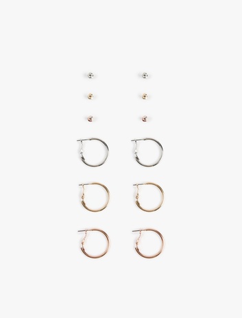 6'lı Çelik Top ve Halka Küpe Seti Sepete Ekle
