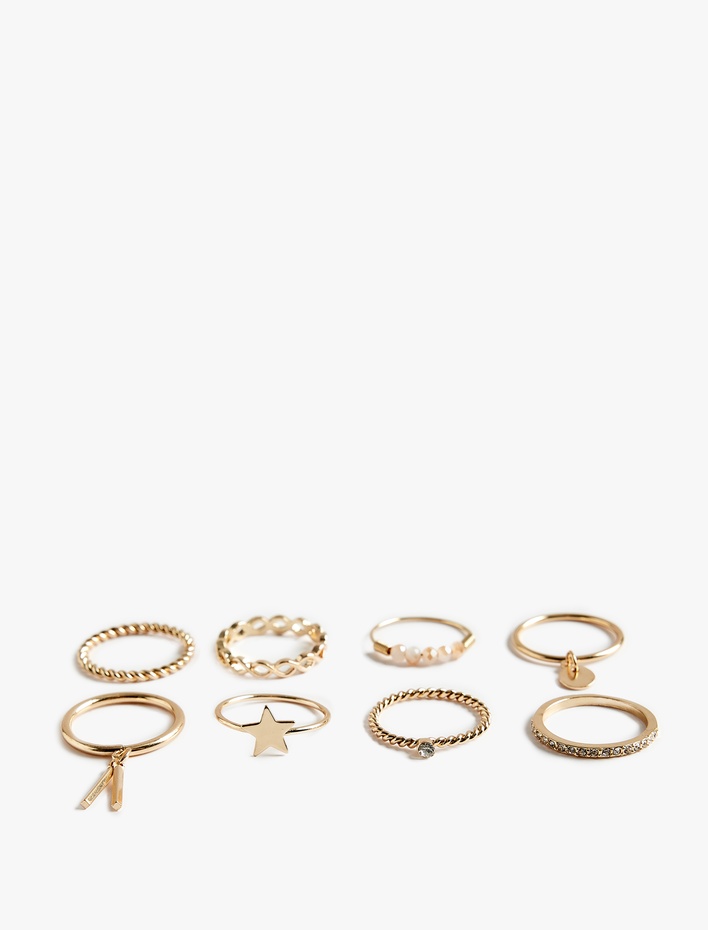 { "id": "8684846373652", "name": "Taş Detaylı Charmlı Çelik 8'li Yüzük Seti", "taxonomy":["ACCESSORIES","ACCESSORIES","WOMEN","JEWELLERY","RINGS"], "currency": "TRY", "unit_price": 299.99 , "unit_sale_price": 299.99 , "url": "https://www.koton.com/tas-detayli-charmli-celik-8-li-yuzuk-seti-altin-rengi-4092618/", "stock": 265, "color": "ALTIN", "size": "L", "product_image_url": "https://ktnimg2.mncdn.com/products/2026/04/09/3226323/5b9bc58f-5596-43e9-b191-4455cb9b4d2b_size870x1142.jpg" }