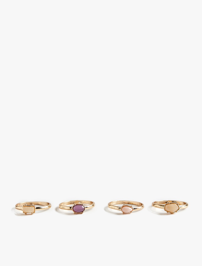 Kadın Taşlı Çok Renkli 4'lü Yüzük Seti