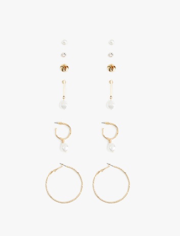 Çelik Karışımlı İnci Detaylı 6'lı Top ve Halka küpe Seti Sepete Ekle