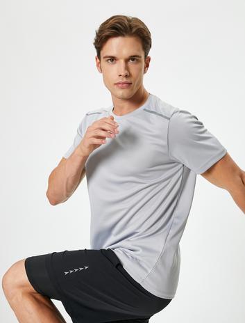 Spor Tişört Baskı Detaylı Bisiklet Yaka Kısa Kollu