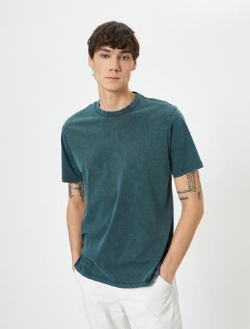 Yıkamalı Tişört Slogan İşlemeli Bisiklet Yaka Kısa Kollu Pamuklu