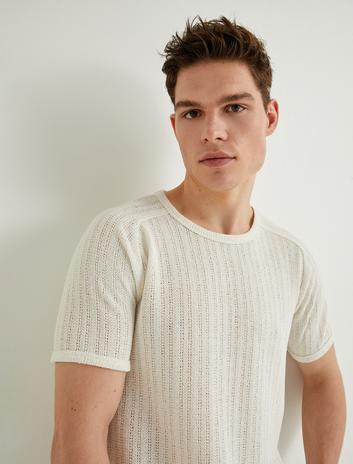 Ajurlu Tişört Bisiklet Yaka Kısa Kollu
