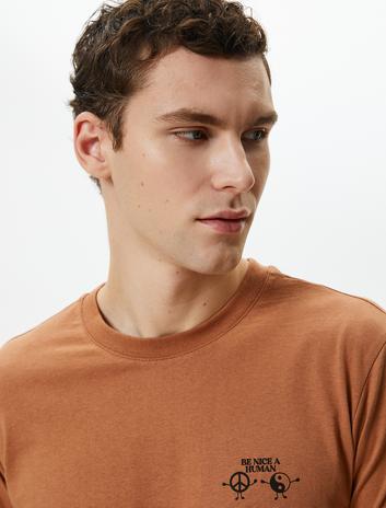 Slogan Baskılı Tişört Slim Fit Bisiklet Yaka Kısa Kollu Pamuklu Sepete Ekle