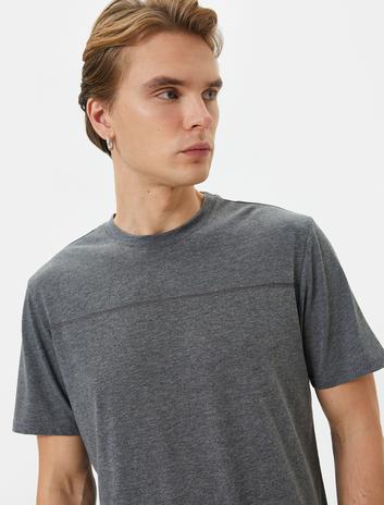 Bisiklet Yaka Tişört Dikiş Detaylı Kısa Kollu