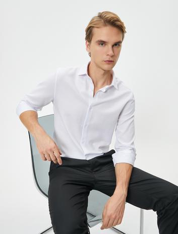 Klasik Gömlek Yarım İtalyan Yaka Düğmeli Uzun Kollu Regular Fit