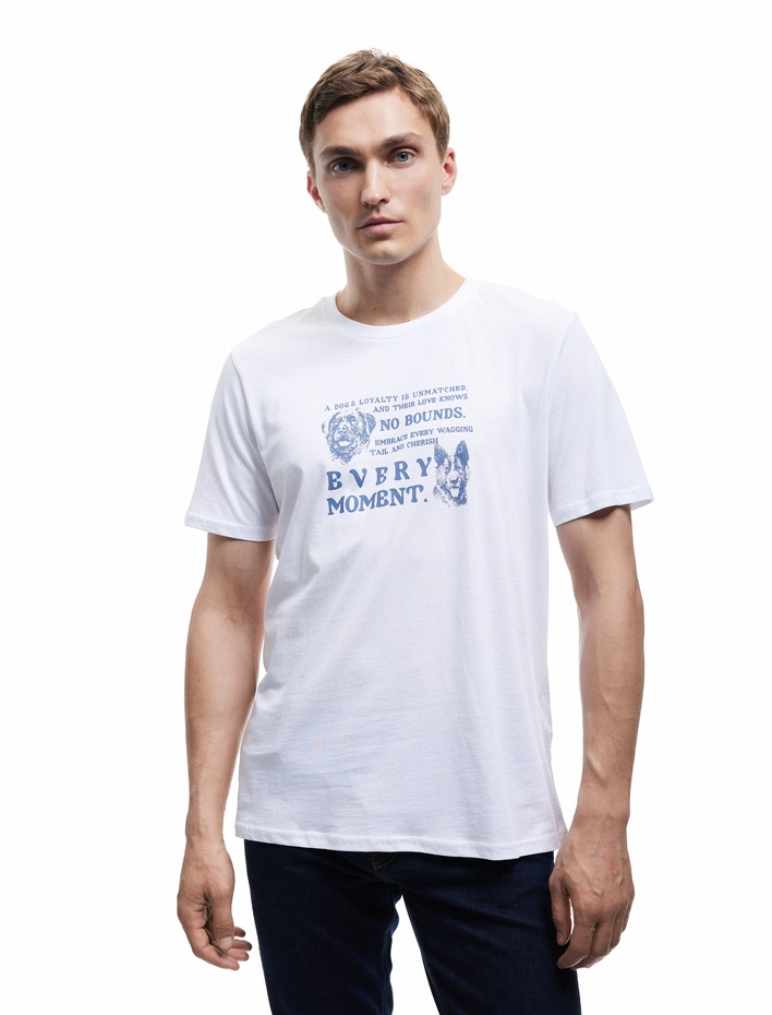 Kısa Kollu Bisiklet Yaka Regular Fit Pamuklu Köpek Baskılı Tişört Sepete Ekle