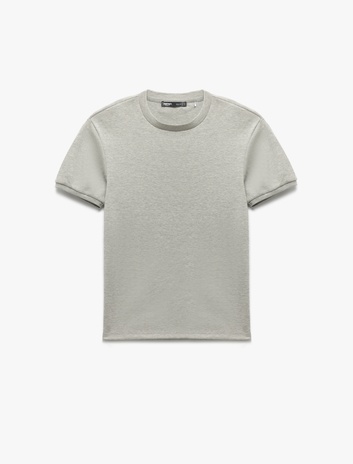 Bisiklet Yaka Kısa Kollu Ajurlu Regular Fit Pamuk Karışımlı Dokulu Tişört Sepete Ekle